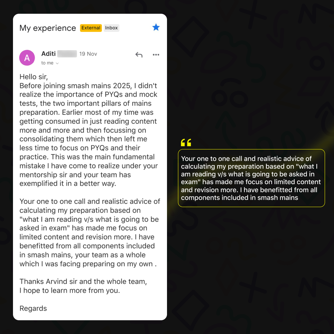 The Smash Mains Program to ace UPSC CSE. Trusted and Endorsed by AIR 2, Animesh Pradhan (First Attempt, 473 in GS Mains & 133 in Essay).
